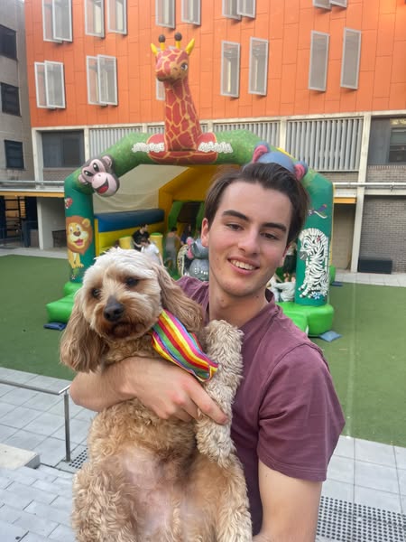 So of course, when his birthday came around, the whole college turned up. There was a jumping castle (yes, for a dog’s birthday), cupcakes and cookies, a Slurpee machine, popcorn, and—most importantly—music pumping through the courtyard. Students were bouncing, dancing, laughing, and talking. The vibe was great. There was even a photographer there, capturing the moments that words can’t quite hold.