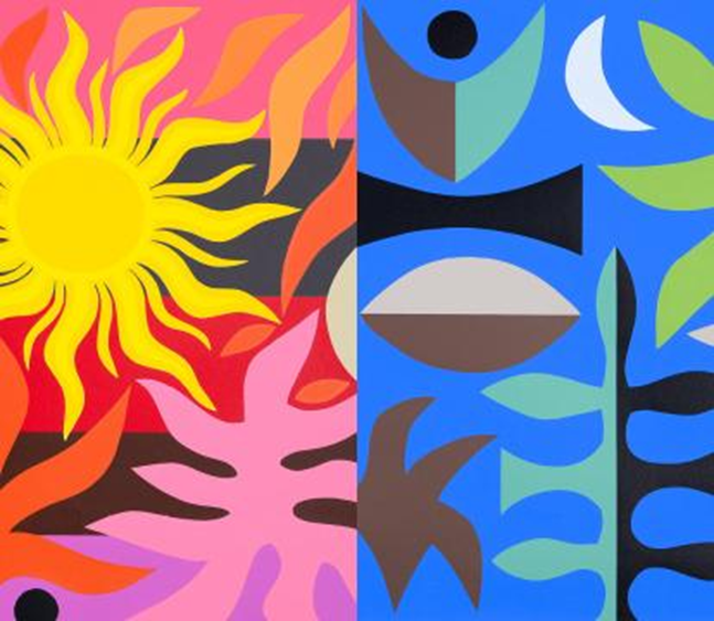 It’s by John Coburn, the Australian abstract painter whose work captures the grandeur of our land in shapes that feel both organic and sacred. Coburn once said his art was “flat-patterned, using brilliant colour combinations based on natural or organic images.” Yet behind that simplicity is a spiritual charge, as if the earth itself were whispering its own prayer.